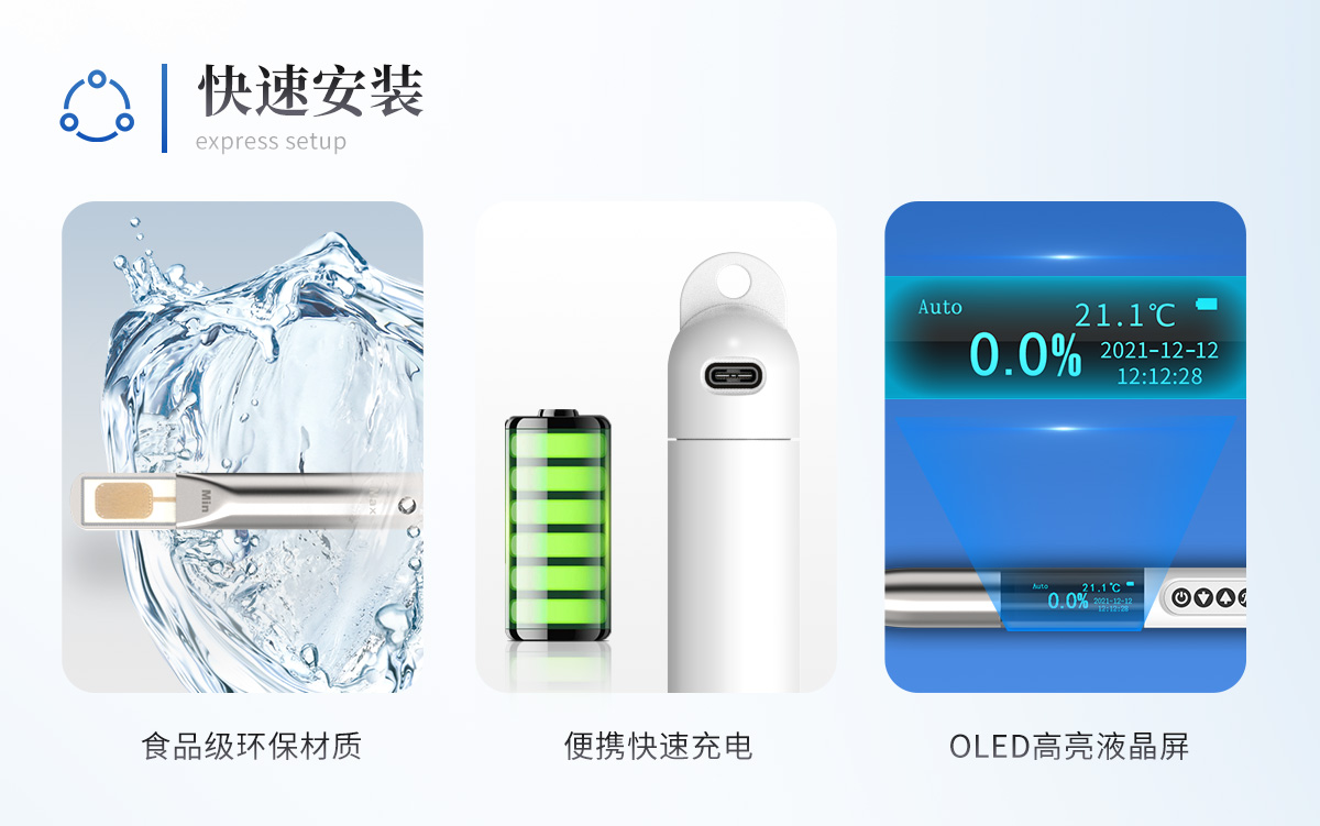 ■沒有二次污染 探頭所選材質(zhì)均為食品級(jí)環(huán)保材質(zhì),不會(huì)產(chǎn)生二次污染。