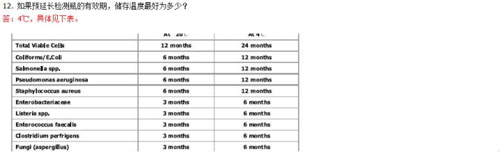 答:對(duì)檢測樣本自身的溫度沒有限制,檢測樣本中微生物,請(qǐng)嚴(yán)格遵照所檢測微生物對(duì)應(yīng)的孵育溫度,依然根據(jù)對(duì)照表。